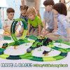 - 245Pcs Build a 163IN Long Race Track – Including 2 Glowing Cars, 224 pcs Flexible Tracks, 2 Three-directional Branch Road, 1 Loop Track, 2 pcs Triangle Curved Bases, 4 psc Bridge Piers, 4 Trees, 1 Ball, and 2 Dinosaurs figures. Made of Non-toxic and durable plastic with pure colors. Complies with US toy standard. Safe for kids to play with. Mode: 317