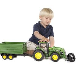 My son loves this and was excited to find that there are two bales included. Hooks up to his tractors, even of differing brands. It is pricy for plastic, and I always have a slight issue with paying a lot for plastic things. However, it is very sturdy, and I figure he is only young once, so the price became a non issue when I saw how happy he was when he got it.
