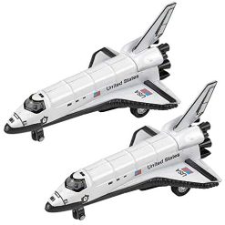 My young son wanted a space theme for his birthday, and these were just the right size for decorating his cake. They’re not very big given the price, but I did like that they also came with a card that gave him facts about each of the space ships. We’ve had them for a couple of years now and he’s played with them as toys since he got them. They’ve held up well except for breaking the long, thin tips off 2 of the rockets. He liked that the shuttle comes of the fuel tanks as well.