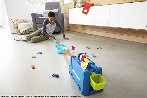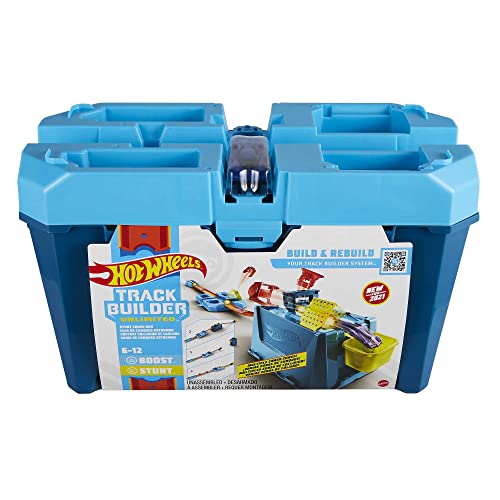 - The Hot Wheels Track Builder Crash Box is an explosive and thrilling all-in-one stunt box that includes 18 pieces with 3 unique stunting components and more than 4 different track configurations to let kids customize their builds.